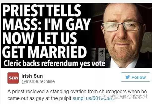 為了支持同性婚姻,愛爾蘭都柏林的一個牧師在一次集會上公開出櫃。表示支持 Yes 的投票。
