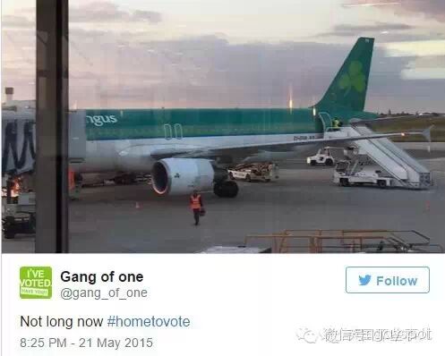 在 twitter 上愛爾蘭人民也發起了 # 回家去投票 # 的活動。