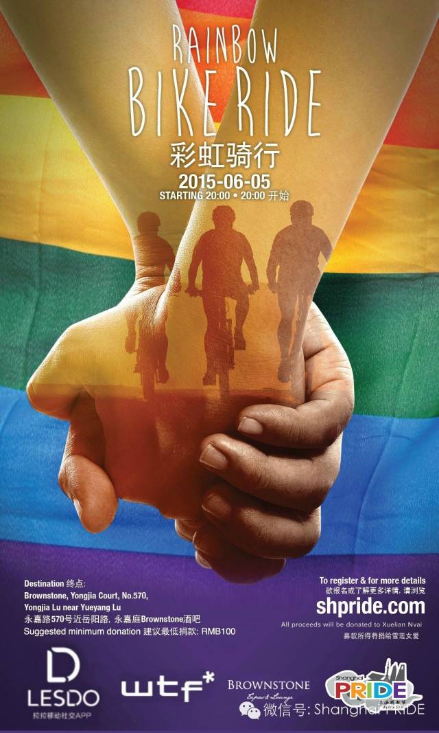 Proud sponsors of the event include lesbian social network app LESDO, wtf* Bikes store, and Brownstone. For updates on this and other Pride7 events, visit shpride.com or follow ShanghaiPRIDE's social media channels, including WeChat (Shanghai-PRIDE), Weibo ( weibo.com/shanghaipride), Facebook (facebook.com/ShanghaiPride), and INSTAGRAM(@Shanghaipride). Contact: Email: shanghaipride@gmail.com Register: C lick "Read More" at the bottom (start from 12-May)